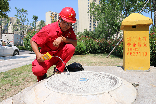 宋緒全是2007年通過競聘上崗從泰山玻纖進入安泰燃?xì)夤竟ぷ鞯?,刨除在兩站的工作時間,他擁有8年的巡線經(jīng)驗。巡線工作使得他皮膚黝黑,也讓他養(yǎng)成了吃苦耐勞的精神和雷厲風(fēng)行的作風(fēng)。正是這樣,他成為管網(wǎng)部的一名“急先鋒”。宋緒全說,每天的工作是對公司管線進行巡檢,對沿線供氣設(shè)備設(shè)施進行查漏,發(fā)現(xiàn)管線保護范圍內(nèi)有施工跡象的,及時和施工方進行聯(lián)系并協(xié)調(diào)處理,確保管線不被施工破壞。工具包內(nèi)有檢漏儀、卷尺和拉閥門井蓋的鐵拉鉤。在這炎熱的夏天,人們空手在烈日下行走尚且汗流浹背,何況他還要隨身背著工具包。小區(qū)樓下,看到幾位剛買菜回來的老人,宋緒全上前攀談,一再叮囑用氣安全常識。隨后他又檢查小區(qū)里的調(diào)壓器、入戶管和燃?xì)忾y門井,這是他每天都要重復(fù)的工作。