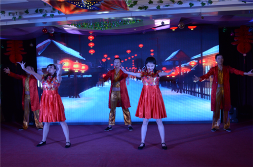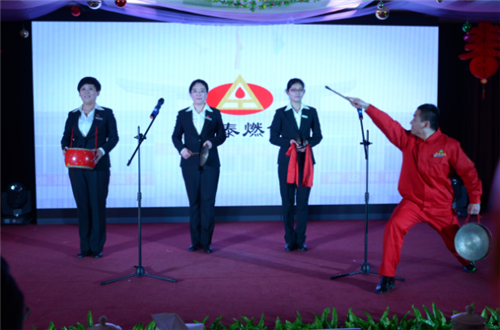 聯(lián)合會(huì)以熱情奔放的舞蹈《相親相愛(ài)》拉開(kāi)了帷幕;以“和諧·平安·共創(chuàng)美好未來(lái)”為主旋律,將安泰燃?xì)馊珕T的日常工作和生活與公司以人為本的發(fā)展理念緊密聯(lián)系起來(lái),用歡快愉悅的藝術(shù)形式展現(xiàn)了安泰燃?xì)馊珕T陽(yáng)光向上、積極進(jìn)取的精神風(fēng)貌。安泰員工精心編排的紅歌大合唱《四渡赤水出奇兵》、《山丹丹開(kāi)花紅艷艷》讓觀眾重溫了紅軍長(zhǎng)征的革命壯舉,銘記長(zhǎng)征精神的高尚品德,合唱團(tuán)的精彩表演,更是博得觀眾陣陣掌聲;獨(dú)具匠心的音樂(lè)快板《安泰贊》表達(dá)了員工對(duì)公司的熱愛(ài)之情;客服部的小品《收費(fèi)大廳的故事》,把燃?xì)夤救粘C嫦蛴脩舻姆?wù)工作標(biāo)準(zhǔn)與現(xiàn)實(shí)問(wèn)題巧妙結(jié)合,妙趣橫生,引發(fā)現(xiàn)場(chǎng)陣陣歡笑,更是把晚會(huì)氣氛推向高潮。整場(chǎng)聯(lián)歡會(huì)內(nèi)容豐富,唱歌、相聲、三句半、音樂(lè)快板等形式多樣,充分體現(xiàn)出領(lǐng)導(dǎo)與員工其樂(lè)融融的歡慶場(chǎng)面。