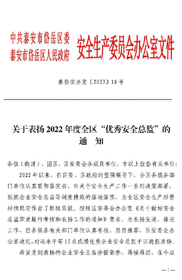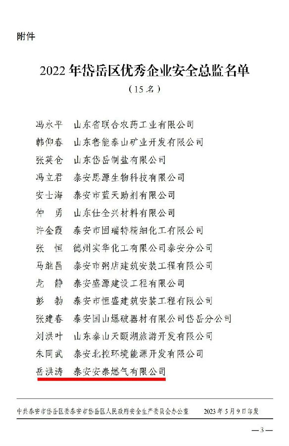 近期,在岱岳區(qū)優(yōu)秀企業(yè)安全總監(jiān)評選中,安泰燃氣公司安全總監(jiān)岳洪濤喜獲殊榮。下面請跟小編一同領略榜樣風采。