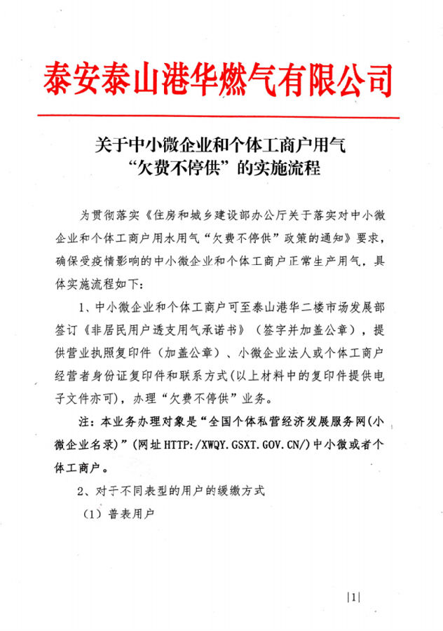 關于中小微企業(yè)和個體工商戶用氣“欠費不停供”的實施流程
