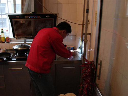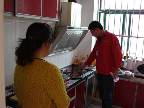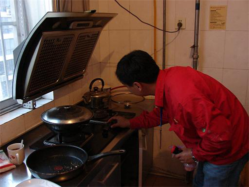 工作人員對(duì)灶具有無(wú)熄火保護(hù)裝置進(jìn)行檢測(cè)