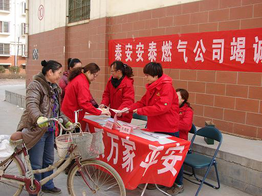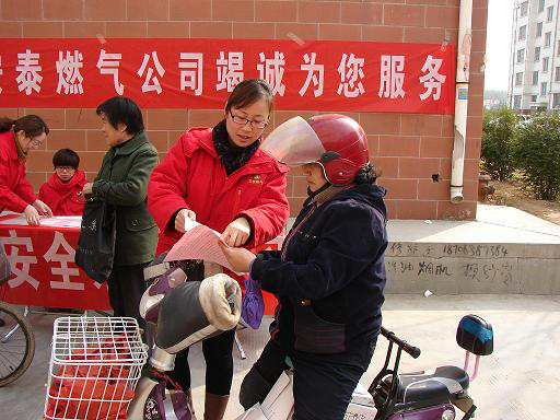 近年來隨著我市城市化進(jìn)程腳步的加快,越來越多的舊村改造房拔地而建,天然氣作為生活能源已走進(jìn)千家萬戶。然而安全用氣的意識(shí)和常識(shí)都未能達(dá)到廣范的普及和應(yīng)用。自安泰燃?xì)夤境闪⒁詠恚冀K積極組織各種公共場(chǎng)所和居民社區(qū)的燃?xì)獍踩麄髦黝}活動(dòng),并借助這個(gè)平臺(tái)向廣大市民群眾大力宣傳、普及有關(guān)天然氣的法律、法規(guī)知識(shí)和安全用氣常識(shí),受到了廣大民用戶的廣泛好評(píng)。