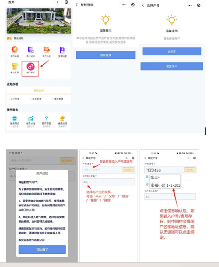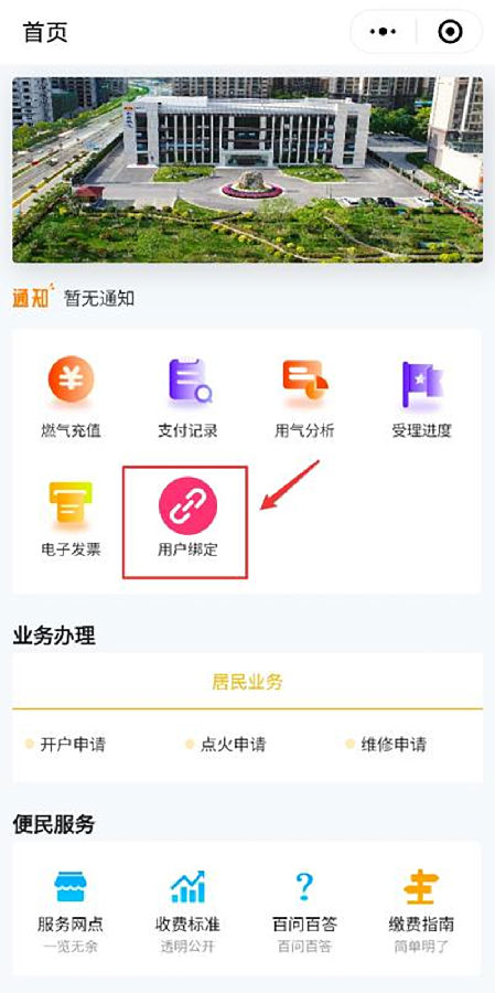 ? 全部綁定完成后,點(diǎn)擊首頁(yè)的“用戶綁定”可查看并切換當(dāng)前登錄的燃?xì)赓~戶。