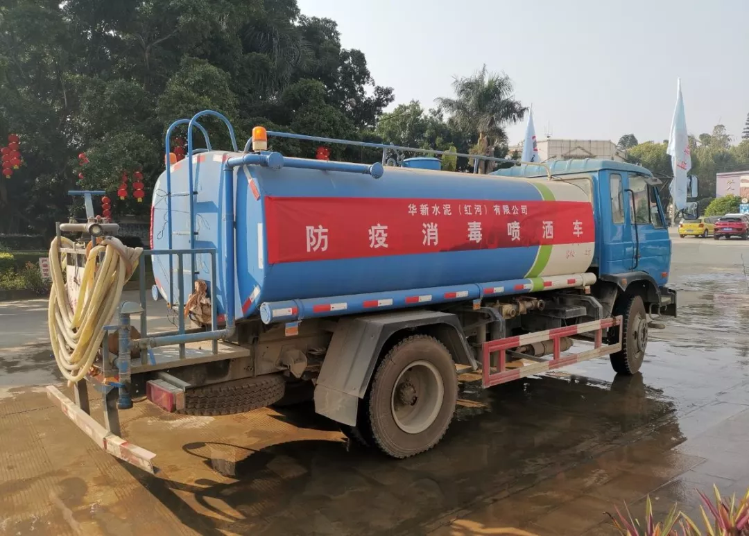 華新紅河公司為當(dāng)?shù)厣鐓^(qū)噴灑消毒