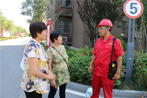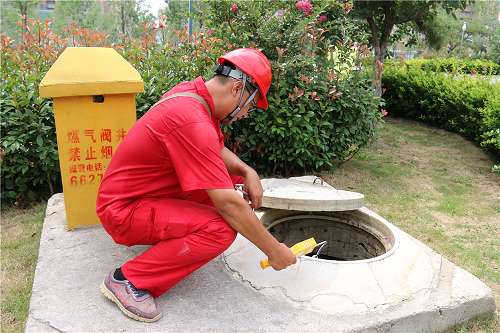 宋緒全是2007年通過競聘上崗從泰山玻纖進入安泰燃?xì)夤竟ぷ鞯?,刨除在兩站的工作時間,他擁有8年的巡線經(jīng)驗。巡線工作使得他皮膚黝黑,也讓他養(yǎng)成了吃苦耐勞的精神和雷厲風(fēng)行的作風(fēng)。正是這樣,他成為管網(wǎng)部的一名“急先鋒”。宋緒全說,每天的工作是對公司管線進行巡檢,對沿線供氣設(shè)備設(shè)施進行查漏,發(fā)現(xiàn)管線保護范圍內(nèi)有施工跡象的,及時和施工方進行聯(lián)系并協(xié)調(diào)處理,確保管線不被施工破壞。工具包內(nèi)有檢漏儀、卷尺和拉閥門井蓋的鐵拉鉤。在這炎熱的夏天,人們空手在烈日下行走尚且汗流浹背,何況他還要隨身背著工具包。小區(qū)樓下,看到幾位剛買菜回來的老人,宋緒全上前攀談,一再叮囑用氣安全常識。隨后他又檢查小區(qū)里的調(diào)壓器、入戶管和燃?xì)忾y門井,這是他每天都要重復(fù)的工作。