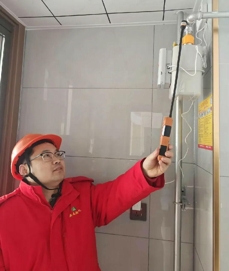 02入戶后,燃?xì)獍矙z人員使用專業(yè)儀器,逐一檢查燃?xì)夤艿澜涌诩叭細(xì)饩叩热細(xì)庠O(shè)施是否漏氣或存在安全隱患,同時向用戶講解燃?xì)獍踩脷庵R。